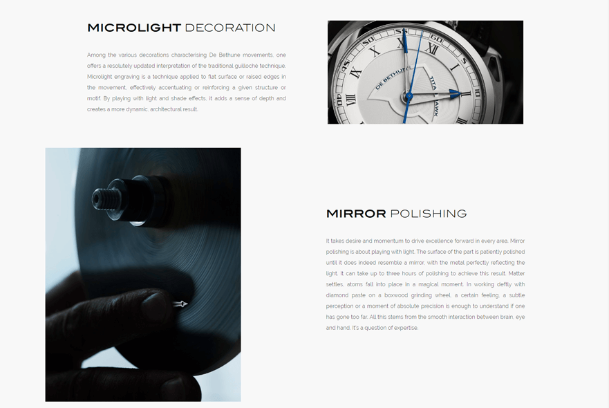 We exercised our technical skills to produce the maximum effect: A timeless, high-quality statement website that respects De Bethune’s core message, brand identity and requirements.