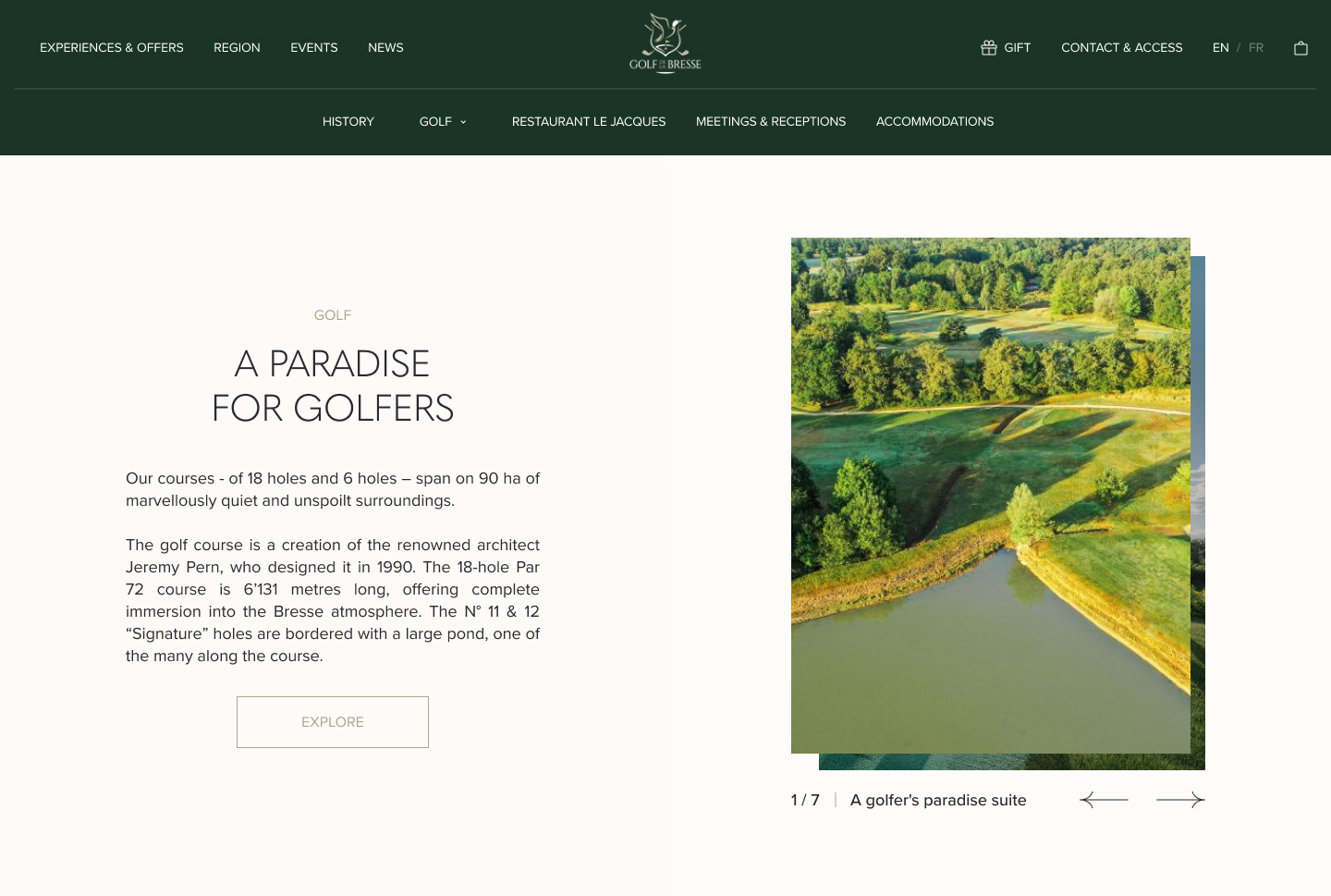 We're throwing it back to summer with this warm and stunning website. The Golf de la Bresse has everything you can hope for, and this carefully crafted website easily proves it.