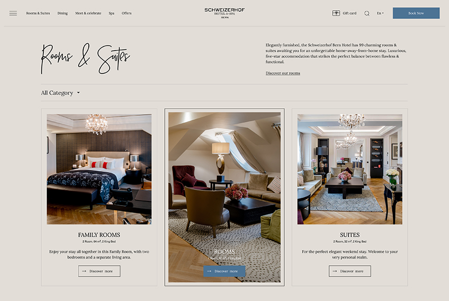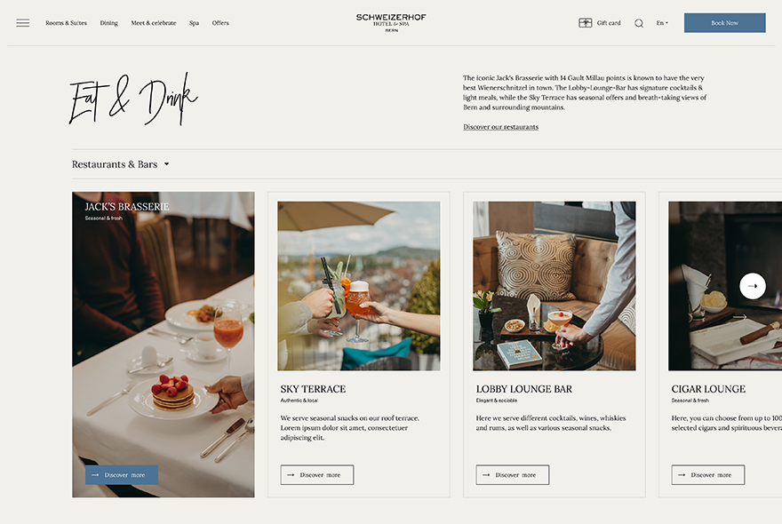 We completely transformed the image of Hotel Schweizerhof Bern to create a thoughtful, intuitive and inspiring design that reflects the true nature of this iconic brand.