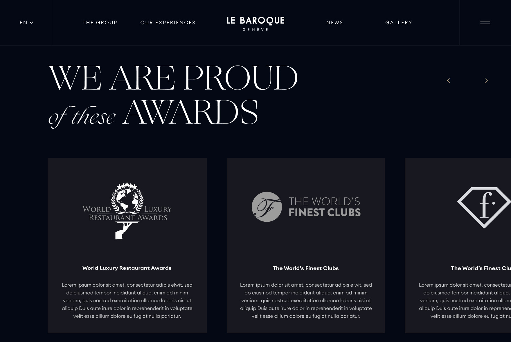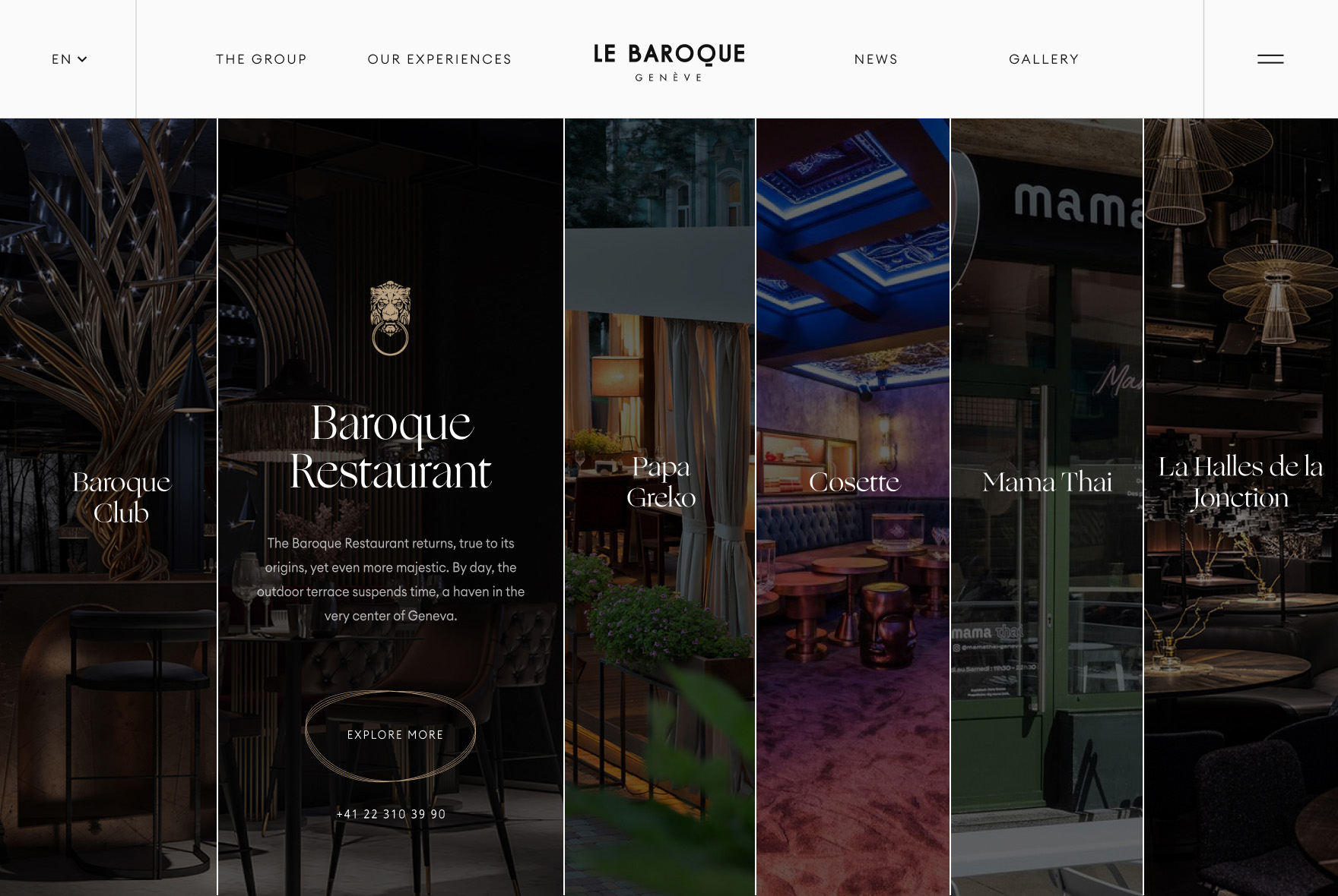 Le Baroque Groupe wants to make it clear: they're all about fine living. Discover a website that makes no concession and dive into the hospitality extravaganza.
