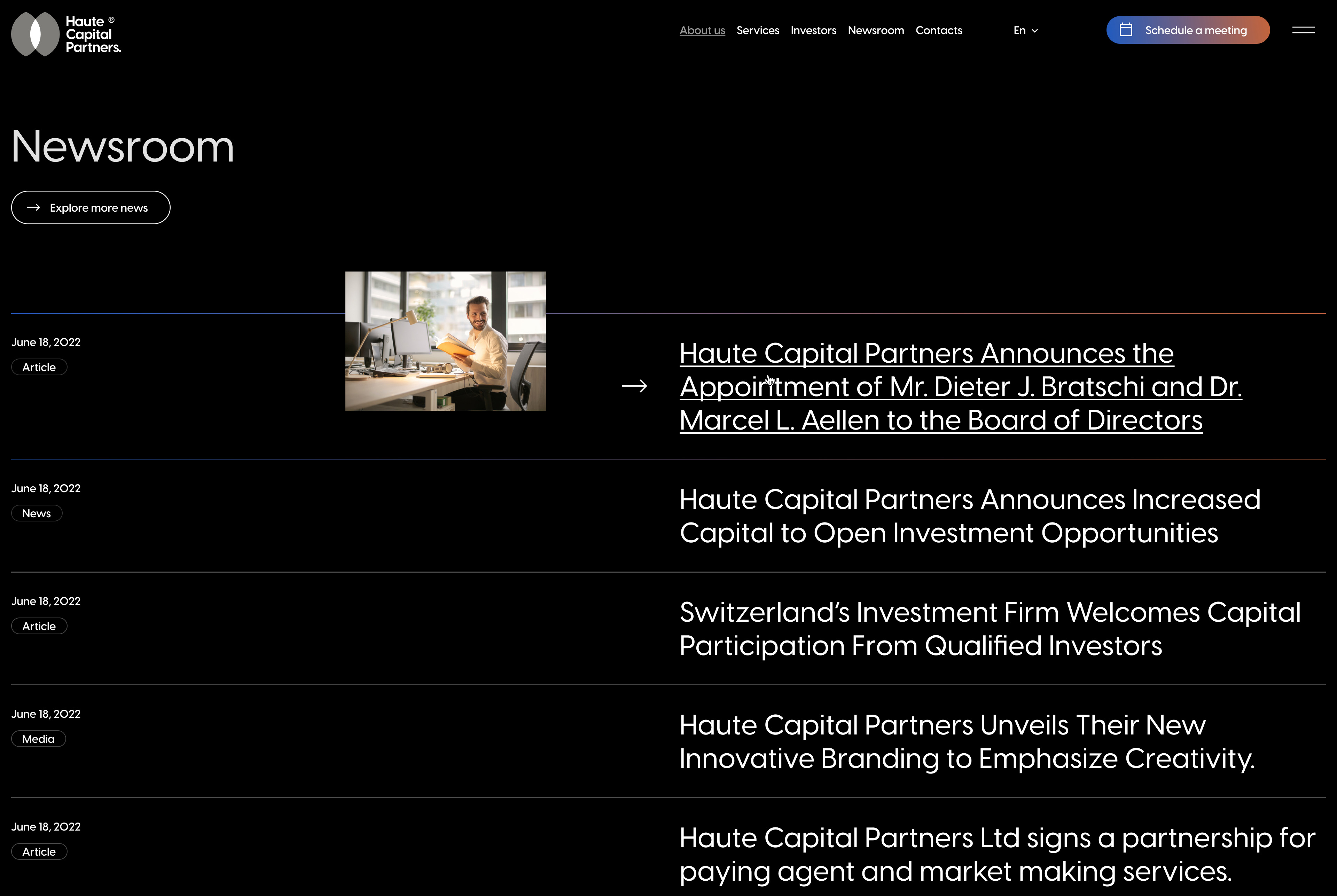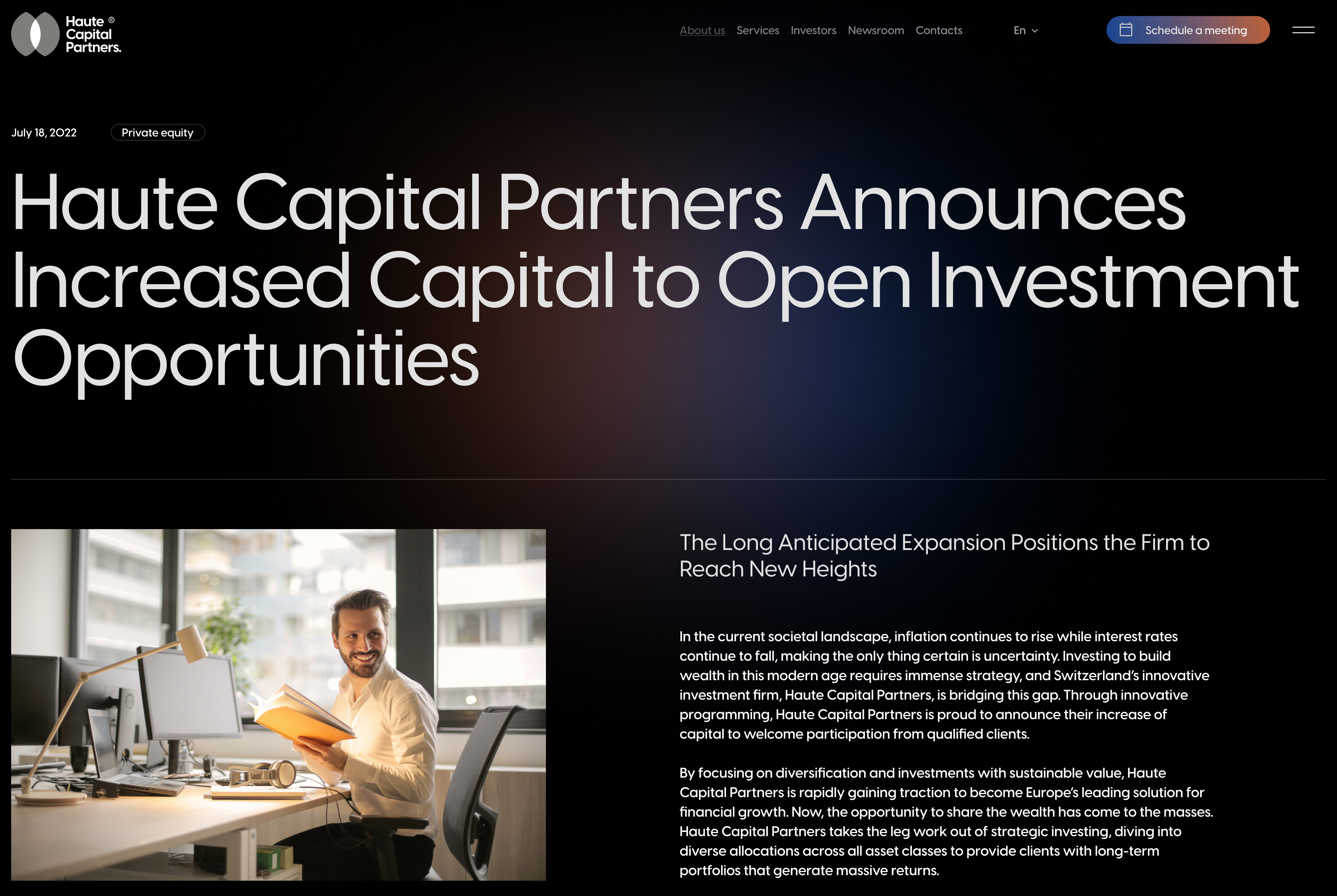 Cette entreprise d'investissement nous à fait confiance pour transformer leur site internet de manière à refléter leurs domaines d'expertise. Le résultat final est un site tout en élégance et prestige, pour attirer des prospects qualifiés.