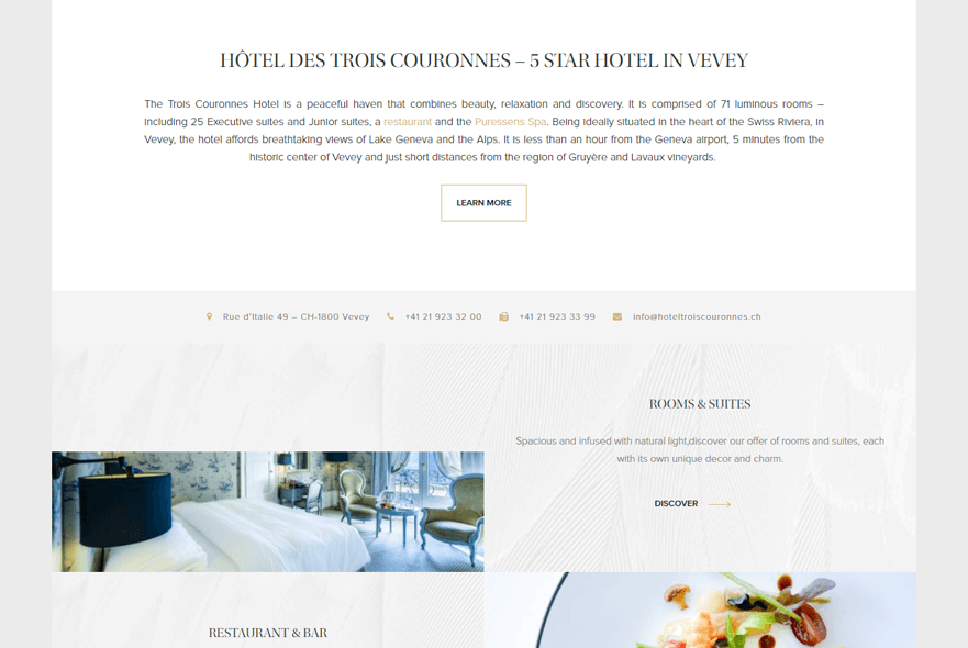 With the launch of their impeccable new web design the renowned residencies and services of Hotel Des Trois Couronnes brand are profoundly captured online.